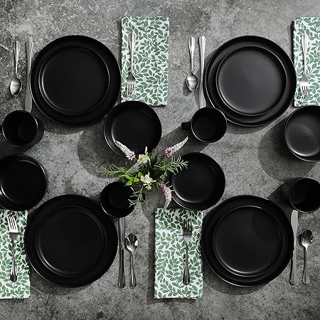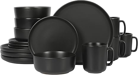 Be the first to review “Gibson Home Zuma Stoneware Plates, Bowls, & Mugs Dinnerware Set – Matte Black, Service for Four (16pcs)”